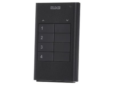 Беспроводной ручной передатчик KNX на 4 кнопки — Пульт дистанционного управления KNX для коммутационного устройства HS 4 RF – Jung – 4011377127647: Беспроводной ручной передатчик Jung KNX RF на 4 кнопки в цвете антрацит. HS 4 RF — это элегантное решение для гибкого управления KNX по радио. Он подходит для удобного управления освещением, диммированием, жалюзи, а также для установки значений и запуска сценариев. Это делает его идеальным для современных жилых и коммерческих зданий, где важны удобство управления, эстетичный внешний вид и высокая функциональность. Гибкое беспроводное управление KNX для освещения, сценариев и жалюзи. Этот портативный передатчик с питанием от батареи предназначен для использования в проводных установках KNX через медиакубер. Планирование и ввод в эксплуатацию осуществляется с использованием ETS5 или выше. Благодаря четырем уровням управления типичные функции «умного здания» можно быстро и интуитивно вызывать. Кнопочные пары можно использовать как отдельные кнопки или как переключатели-качели. Благодаря этому устройство идеально подходит для различных концепций управления дома, в офисе или на предприятии. Двухцветный светодиод отображает нажатие, состояние передачи и обратную связь от привода. Это обеспечивает надежную работу и упрощает повседневное использование, например, для управления световыми сценами в гостиной или точного управления жалюзи в конференц-зале. Основные характеристики и преимущества продукта: 4-стороннее управление: Четыре свободно используемые панели управления для переключения, диммирования, управления жалюзи и создания сценариев. Интеграция с KNX RF: Беспроводное управление в системах KNX через подходящий медиа-коммутатор. Высокая гибкость: Кнопочные пары могут быть опционально параметризованы как кнопочные или переключатели-качели. Визуальная обратная связь: Двухцветный светодиод для отображения работы, передачи и состояния. Практичные радиофункции: Подходит для управления освещением, значениями яркости и сценариями. Возможность мобильного использования: Идеально подходит для гибкого размещения без стационарной проводки. Современный дизайн: Антрацитовая версия для требовательных интерьеров. Совместимость с ETS: Разработано с использованием ETS5 или более поздней версии для бесшовной интеграции с KNX. Типичные области применения в умных домах: Управление освещением: удобное включение, выключение или регулировка яркости в комнатах. Управление жалюзи: целевая отправка команд движения для обеспечения конфиденциальности и защиты от солнца. Вызов сценариев: запуск сохраненных сценариев освещения и комнат одним нажатием кнопки. Настройка значений: быстрая передача значений яркости или заданных параметров. Модернизация: идеально подходит для помещений, где не планируется прокладка новой проводки. Гибкое управление: подходит для использования на диване, кровати, конференц-столе или в мобильном режиме. Технические характеристики вкратце Характеристики Спецификация Изделие Jung KNX RF радиопередатчик ручной 4-позиционный антрацитовый HS 4 RF EAN 4011377127647 Каталог Дистанционное управление передатчиком Система шины KNX RF в установке KNX через медиакубер Планировка ETS5 или выше Количество функций 4-позиционный радиопередатчик Переключение, диммирование, управление жалюзи, установка значений, вызо
