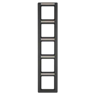 Рамка 5x с BF — 5-секционная рамка антрацитового цвета 10156016 – Berker – 4011334384083: Количество секций: 5, Направление монтажа: вертикальное, Количество горизонтальных секций: 1, Количество вертикальных секций: 5, С монтажной рамкой: нет, Встраиваемая установка: да, Подходит для напольного воздуховода: нет, Подходит для воздуховода устройства: да, Подходит для встроенной установки: да, Поверхность для текста/надписей: да, Материал: пластик, Качество материала: дюропласт, Без галогенов: да, Антибактериальная обработка: нет, Защитное лакированное покрытие поверхности, Матовая поверхность, Цвет: антрацитовый, Номер RAL (аналогичный): 7021, Прозрачная: нет, С откидной крышкой: нет, Степень защиты (IP): IP20, Ударопрочность: IK02, Тип крепления: зажимное, Ширина: 80,5 мм, Высота: 364,5 мм, Глубина: 9,9 мм, Монтажная ширина: 59,3 мм, Монтажная высота: 59,3 мм, диаметр отверстия (проема) 0 мм
