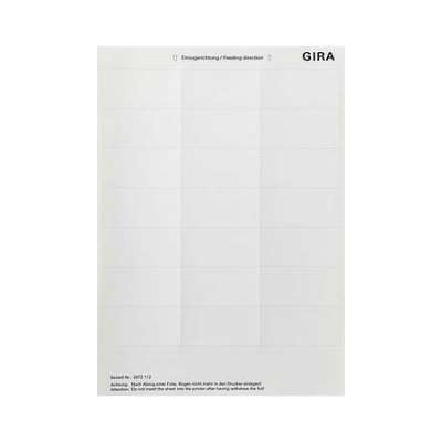 Листы для маркировки 33,5×6 дюймов, 7 аксессуаров, 2872112 – Gira – 4010337052760: Версия: Лист для маркировки, подходит для печати на струйных и лазерных принтерах, цвет: белый, номер RAL (аналогичный) 9010, прозрачный.