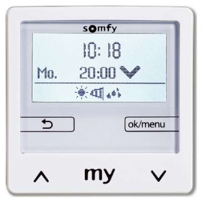 Soliris Smoove control IB+ Pure Wh без рамы — Управление рольставнями 1818315 – SOMFY – 3660849544485: Обзор. Базовый элемент с блоком управления, встроенный таймер да, с разъемом для датчика яркости да, подходит для датчика ветра да, подходит для датчика дождя да, с разъемом для датчика разбития стекла нет, с астрономической программой да, вход для внутреннего телефона да, с функцией памяти да, регулируемое значение защиты от солнца 5000–55000 лк, регулируемое значение защиты от сумерек 5000–55000 лк, генератор случайных чисел да, блокировка безопасности нет, тип монтажа встраиваемый, материал пластик, без галогенов нет, обработка поверхности другая, глянцевая поверхность, цвет белый, прозрачный нет, подходит для класса защиты (IP) IP20, макс. Импульсная мощность 620 Вт, запас хода 20 ч, номинальное напряжение 230 В, частота 50–60 Гц, способ монтажа: винтовой, совместимость с Apple HomeKit: нет, совместимость с Google Assistant: нет, совместимость с Amazon Alexa: нет, поддержка IFTTT: нет