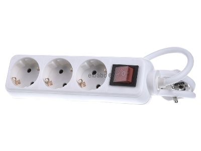 Удлинитель с тремя розетками и угловой вилкой, белый — Удлинитель с розетками белый 384.272S – Bachmann – 4016514038688: Форма корпуса прямоугольная, Количество розеток с защитным контактом 3, С выключателем: да, Автоматический выключатель дифференциального тока: нет, Фильтр помех сети: нет, Защита от перенапряжения: нет, Номинальный ток 16 А, Сечение проводника 1,5 мм², С крышкой: нет, Материал: пластик, Качество материала: термопластик, Без галогенов: нет, Защита поверхности: без обработки, Вариант поверхности: матовый, Цвет: белый, Номер RAL (аналогичный): 9010, Прозрачный: нет, Степень защиты (IP): IP20, Длина кабеля питания: 1,5 м, Витая центральная вставка: да, Угол витой центральной вставки: 35°, Код NEMA: нет