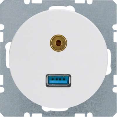 Аудиоразъем USB/3,5 мм, белый/глянцевый — Базовый элемент с центральной крышкой 3… – Berker – 4011334367215: Применение USB, Держатель кабеля да, С пылезащитной крышкой нет, С откидной крышкой нет, Направление выхода прямое, Тип контакта гнездовой, Поле для маркировки без поля для маркировки, С печатью нет, Тип монтажа Встраиваемый, Материал Пластик, Качество материала другое, Без галогенов да, Защита поверхности без обработки, Глянцевая поверхность, Цвет белый, Номер RAL (аналогичный) 9010, Прозрачный нет, Тип крепления Винтовое крепление, С розетками/соединителями да, Подходит для количества розеток/соединителей 2, С фиксатором натяжения нет, Экранированные розетки да, Коммутирующее устройство нет, Подходит для класса защиты (IP) IP20, Ширина устройства 71 мм, Высота устройства 71 мм, Глубина устройства 36,4 мм