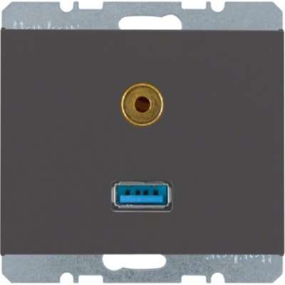 USB/3,5 мм аудиоразъем, матовый антрацитовый — Базовый элемент с центральной крышкой 3315397006 – Berker – 4011334330202: Применение USB, Держатель кабеля да, С пылезащитной крышкой нет, С откидной крышкой нет, Направление выхода прямое, Тип контакта гнездовой, Поле для маркировки без поля для маркировки, С печатью нет, Тип монтажа Встраиваемый, Материал Пластик, Качество материала другое, Без галогенов да, Обработка поверхности лакированная, Тип поверхности матовая, Цвет антрацит, Номер RAL (аналогичный) 7021, Прозрачный нет, Тип крепления Винтовое крепление, С розетками/соединителями да, Подходит для количества розеток/соединителей 2, С фиксатором натяжения нет, Экранированные розетки да, Выключатель нет, Подходит для класса защиты (IP) IP20, Ширина устройства 71 мм, Высота устройства 71 мм, Глубина устройства 36,4 мм